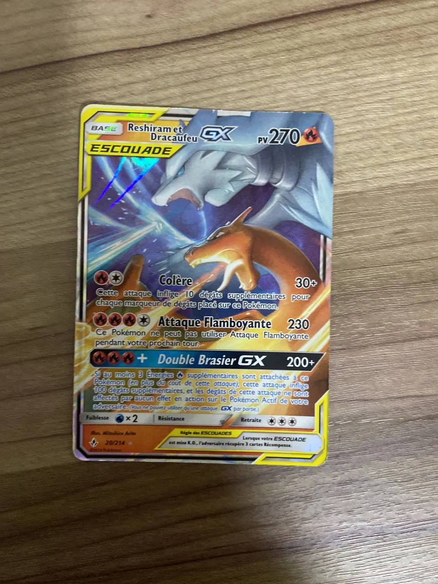 Voir plusDracaufeu et Reshiram GX 20/214 SL10 alliance infaillible FR