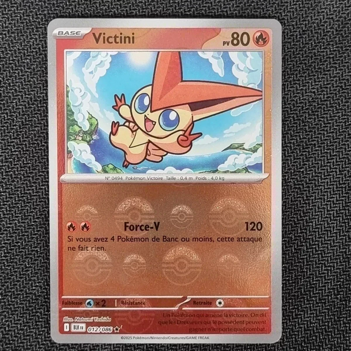 Voir plusCarte pokemon Victini 012/086 POKEBALL - EV10.5 Foudre Noire