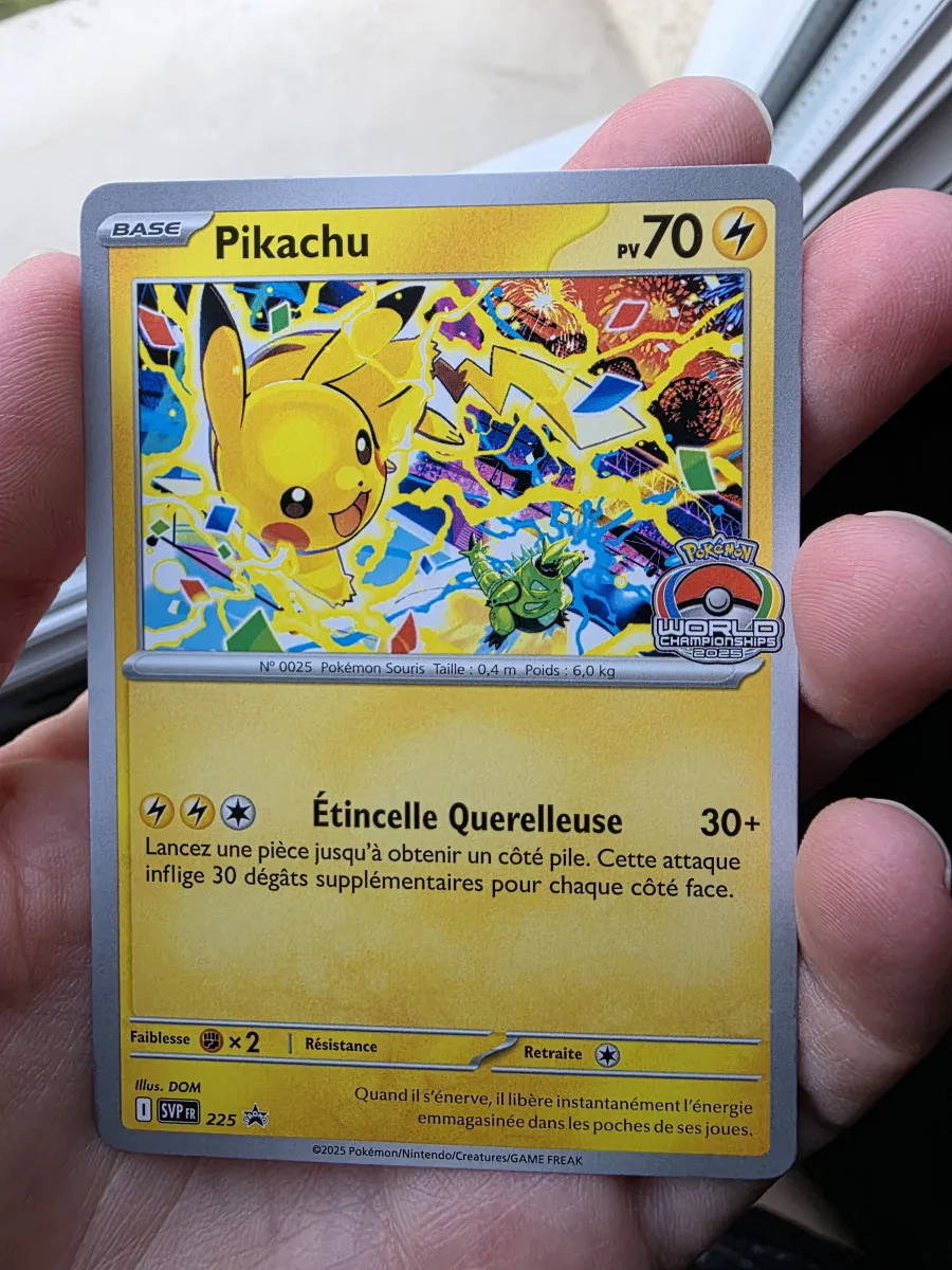 Carte pokémon pikachu world championships 2025 neuve parfait état prix fixe