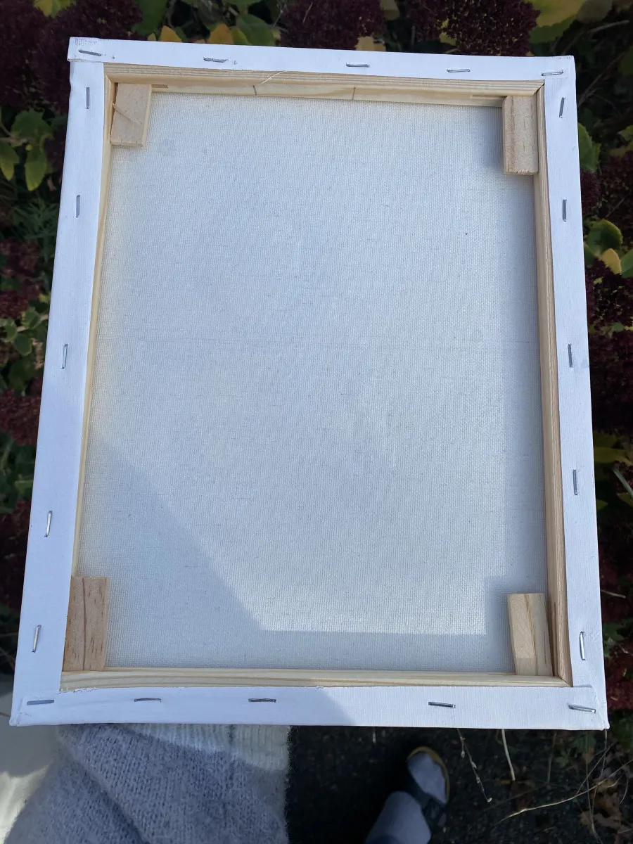 Toile de 24x30cm, peinture à l’eau et perles Hama.