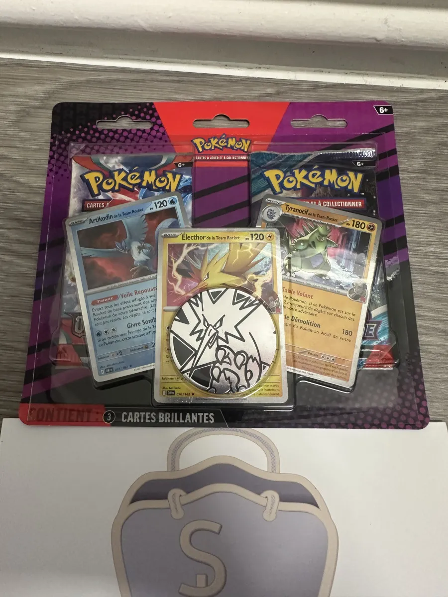 3 cartes brillantes de Artikodin, Electhor et Tyranocif de la Team Rocket,