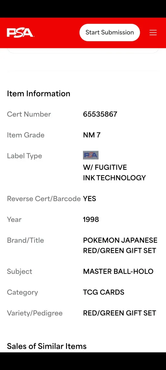 | Catégorie | Cartes TCG (Cartes gradées) |