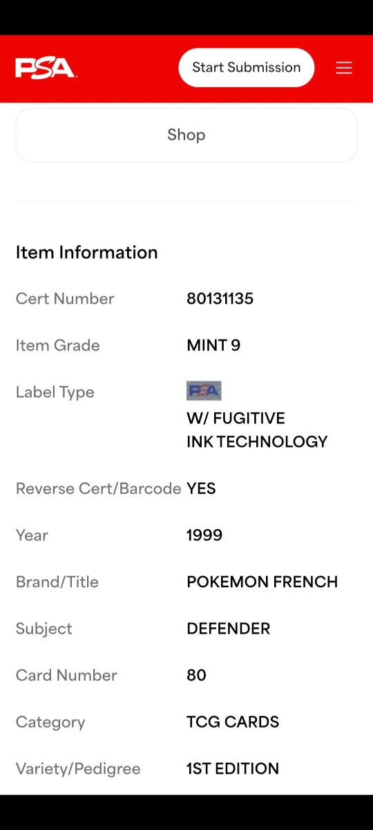 | Catégorie | Cartes TCG (Cartes gradées) |