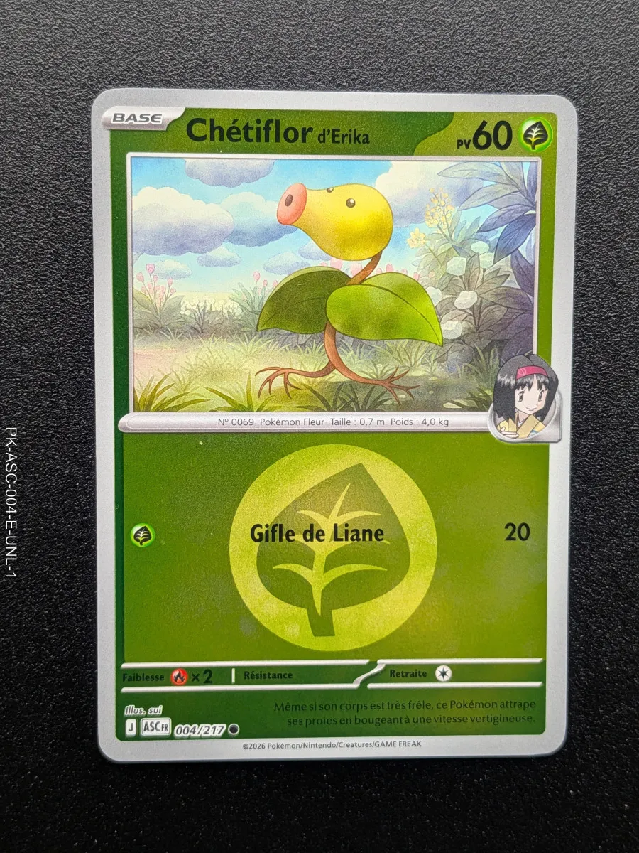 Voir plusCarte pokemon Chétiflor d'Erika 004/217 reverse Energie - ME2.5 - Héros Transcendants (2026)