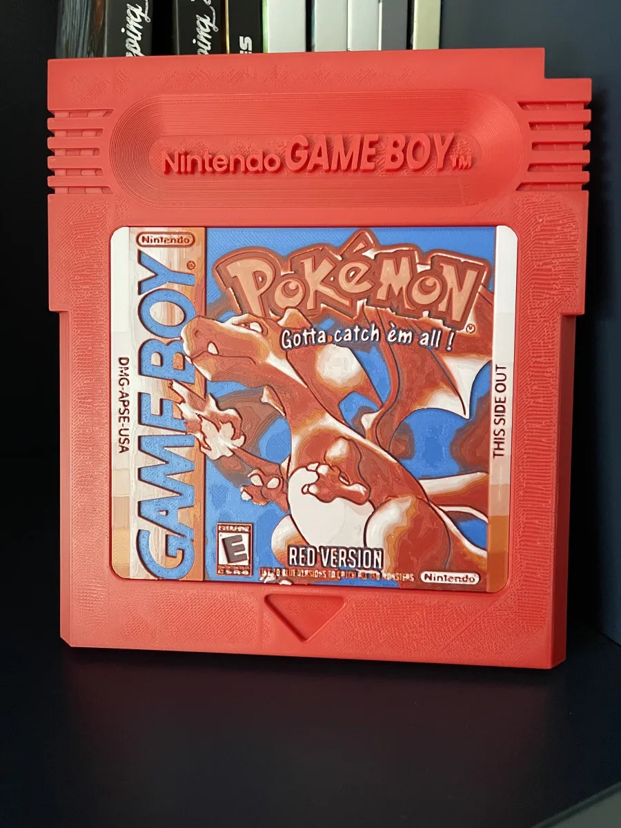 18cm sur 16. Cartouche géante de jeu Game boy Pokémon rouge