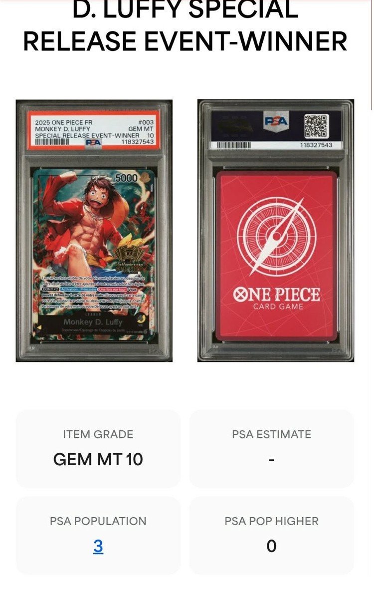 Lot carte one piece event winner Luffy Ace Sabo PSA 10 low pop très rare