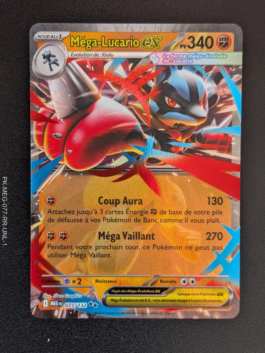 Voir plusCarte pokemon Méga-Lucario ex 077/132 - ME01 - Méga Evolution (2025)