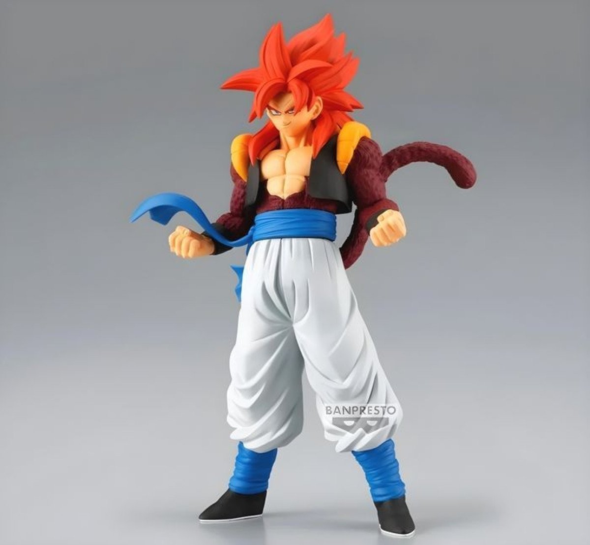 Gogeta Super Saiyan 4, dans une posture dynamique, le regard déterminé, et les finitions (musculature, pelage, chevelure) d'une précision chirurgicale.