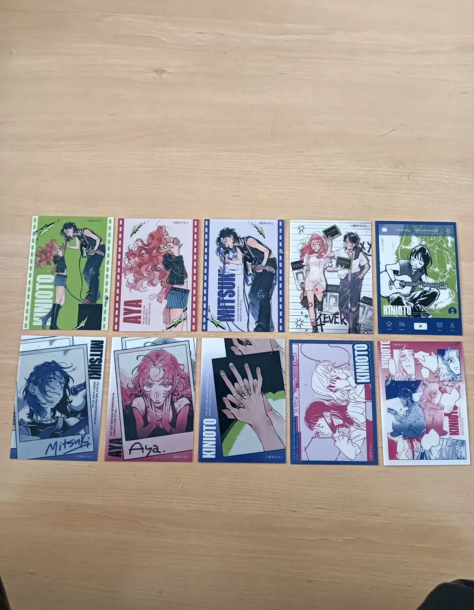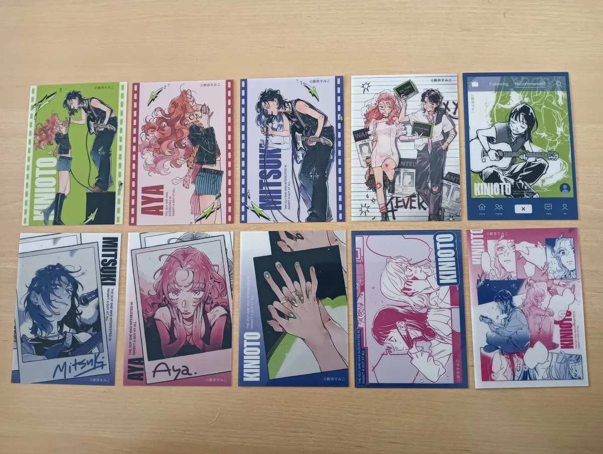 Lot complet des 10 cartes de Mitsuki et Aya du manga the guy she was interested in wasn't a guy at all (green yuri) obtenu lors du pop up a paris, goodie officiel importé du Japon.