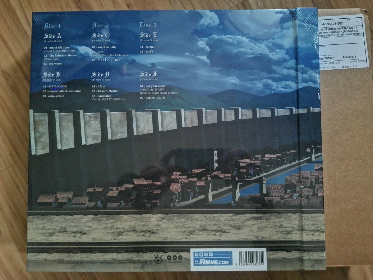 Attaque des Titans S1 OST Deluxe 3LP Vinyles Translucide Fumée Noire – Neuf sous blister