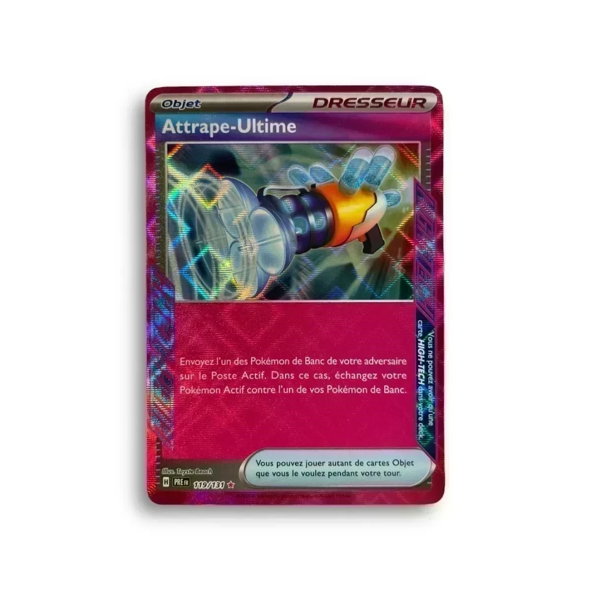 Plongez dans le monde des cartes Pokémon avec la carte Attrape-Ultime une carte spéciale de la série Evolutions Prismatiques Numérotée 119/131 cette carte est une pièce maîtresse pour les collectionneurs et les joueurs du jeu de cartes à collectionner Pokémon. Produit non scellé