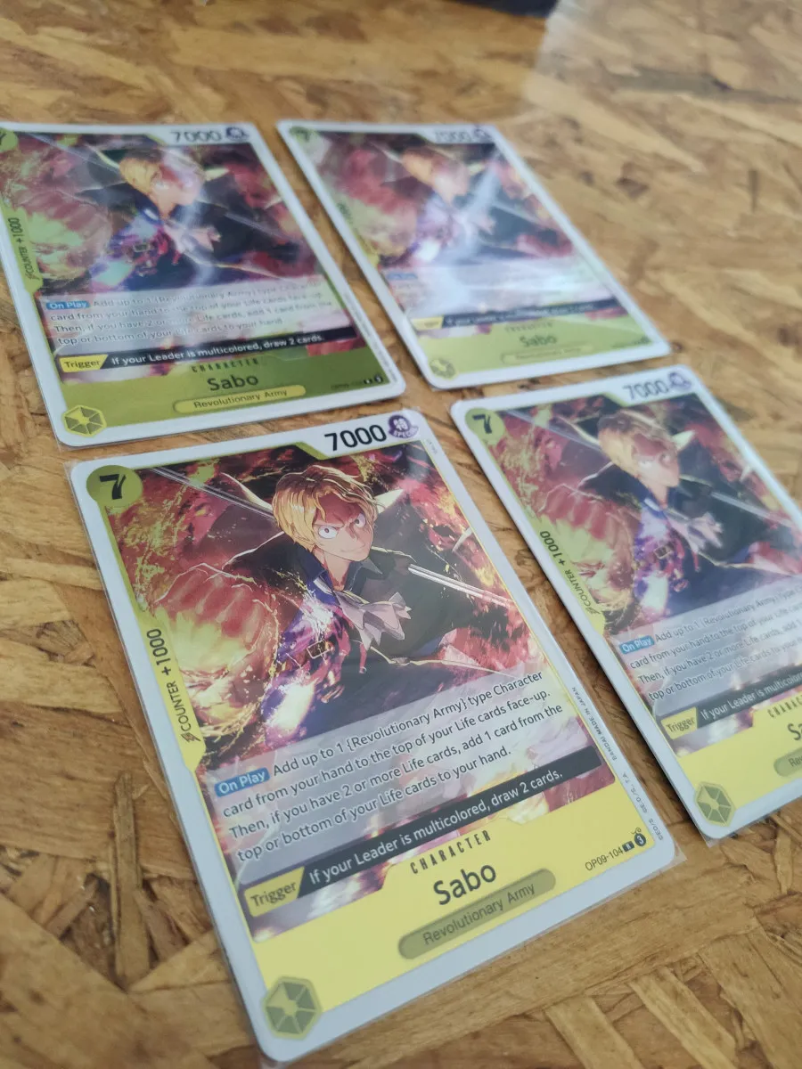 🔥 Cartes One Piece R (rares), brillantes, sous perfect/inner sleeves et parfaites pour compléter un deck Armée Révolutionnaire (par ex Belo Betty qui top actuellement en championnats 🏆)