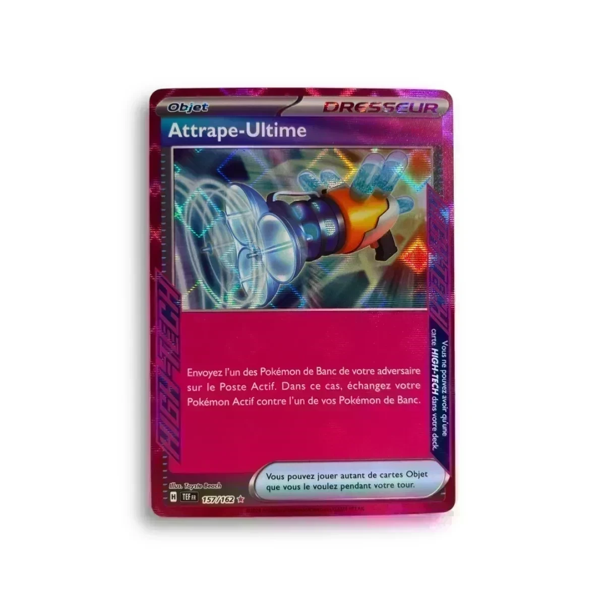 Plongez dans le monde des cartes Pokémon avec la carte Attrape-Ultime une carte spéciale de la série forces temporelles numérotée 157/162 cette carte est une pièce maîtresse pour les collectionneurs et les joueurs du jeu de cartes à collectionner Pokémon. Produit non scellé
