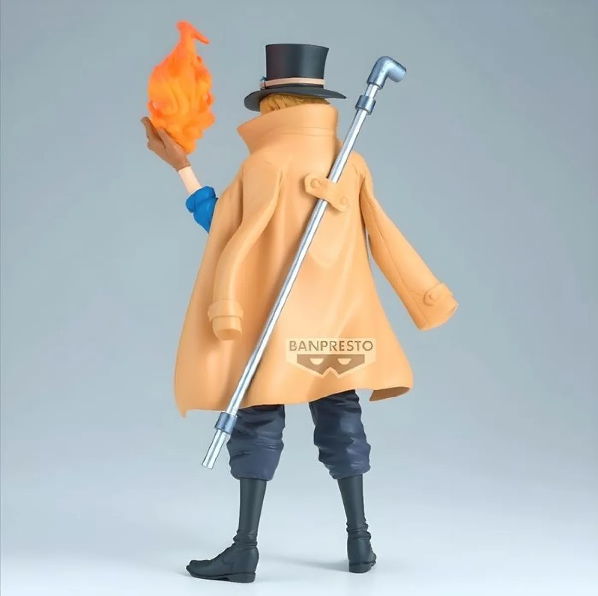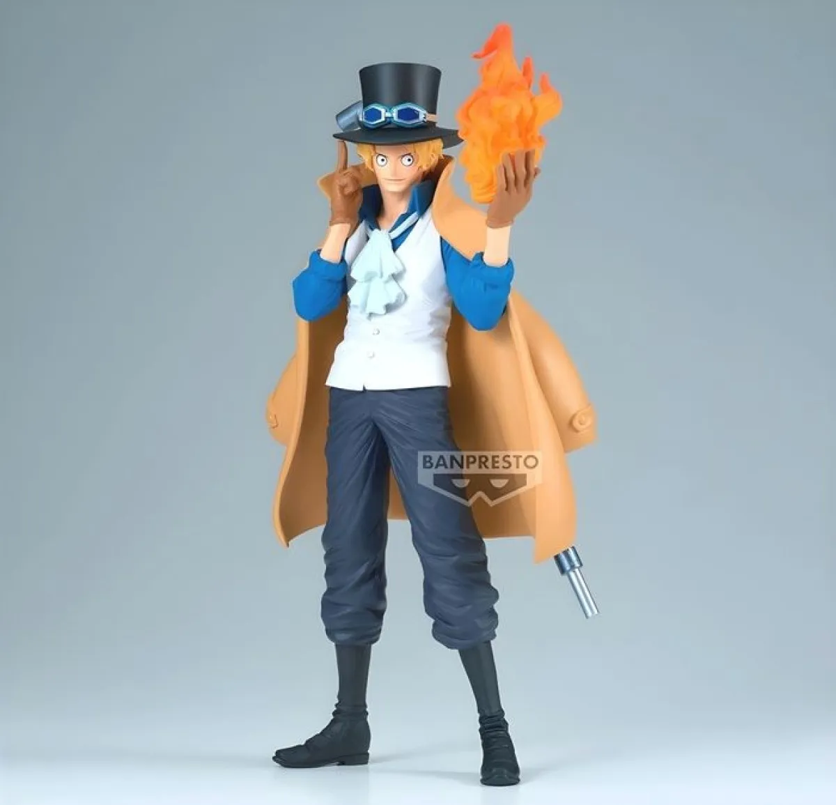 Sabo, numéro 2 de l'Armée Révolutionnaire, utilisant la flamme ardente du Mera Mera no Mi avec une classe naturelle. Vêtu de son emblématique manteau beige et de son chapeau haut-de-forme.