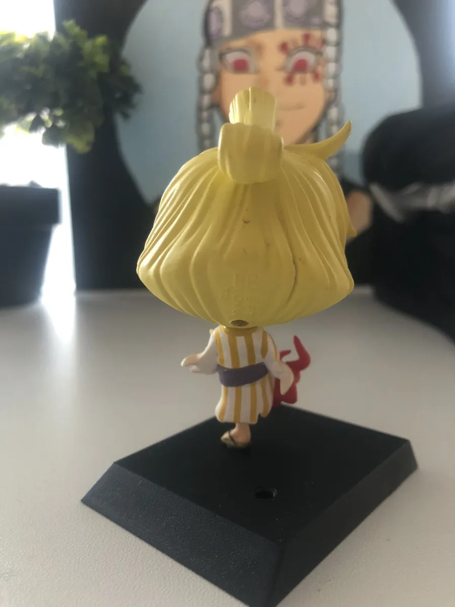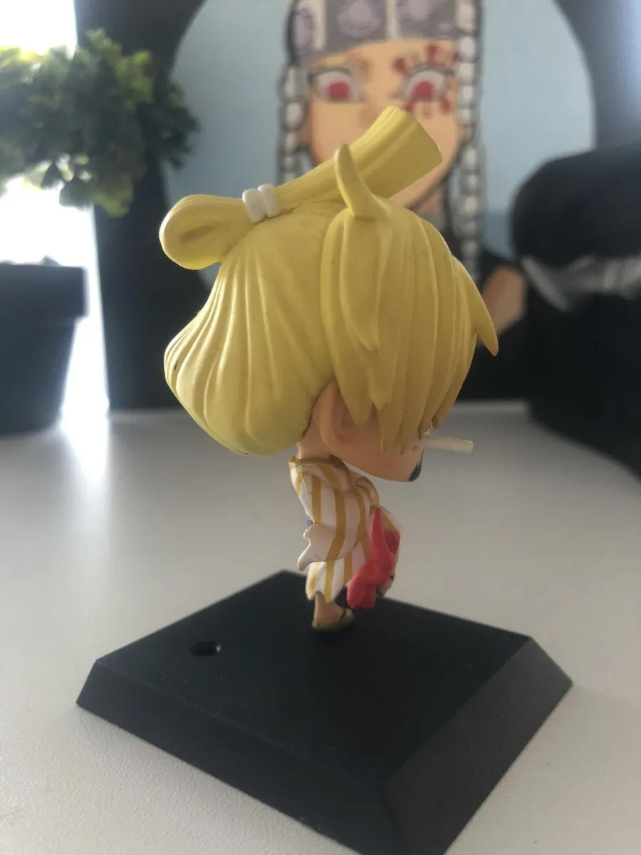 Sanji Vinsmoke en version chibi ultra mignonne (cheveux blonds, cigarette, tenue Wano rayée jaune/blanc, petite main rouge)