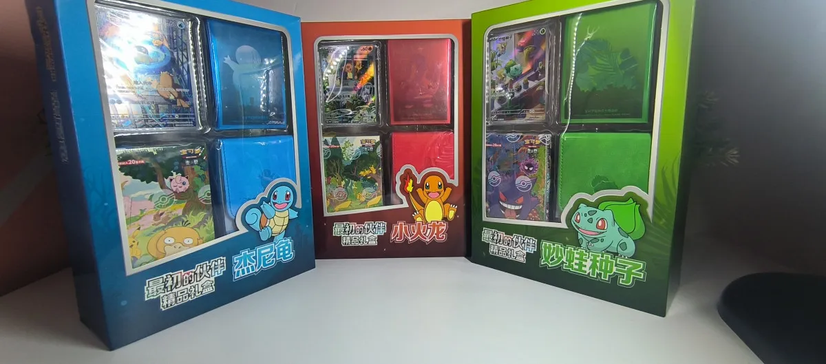 Lot exceptionnel regroupant les trois coffrets collectors exclusifs Chine dédiés aux Pokémon starters iconiques :