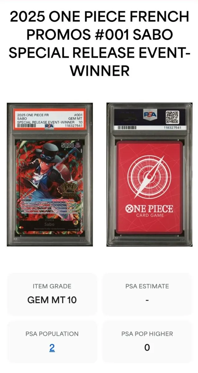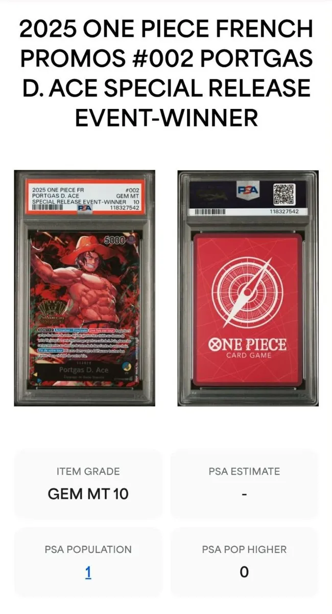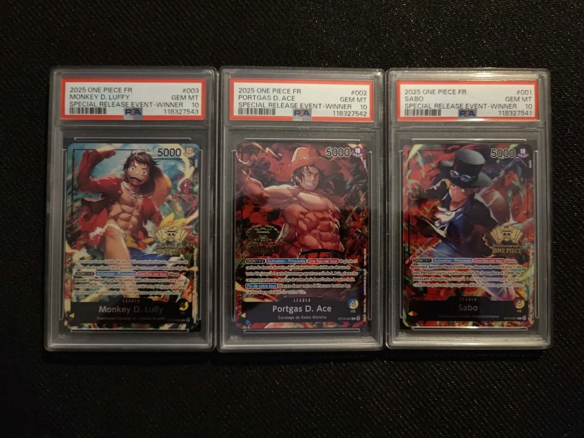 Lot carte one piece event winner Luffy Ace Sabo PSA 10 low pop très rare