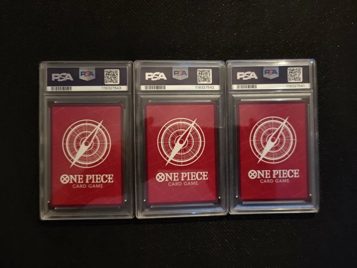 Je mets en vente ce magnifique trio inséparable de cartes One Piece Card Game, toutes gradées PSA 10 (Gem Mint). Il s'agit des cartes promotionnelles "Special Release Event-Winner", version Française (FR).