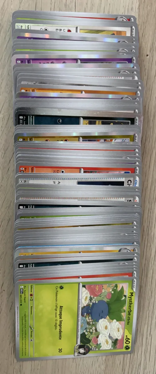 Lot de 120 cartes Pokémon (communes, reverse, holo, cosmo), issues de la série ME2.5 Héros Transcendants. Cartes récentes en très bon état, idéales pour collection ou deck.