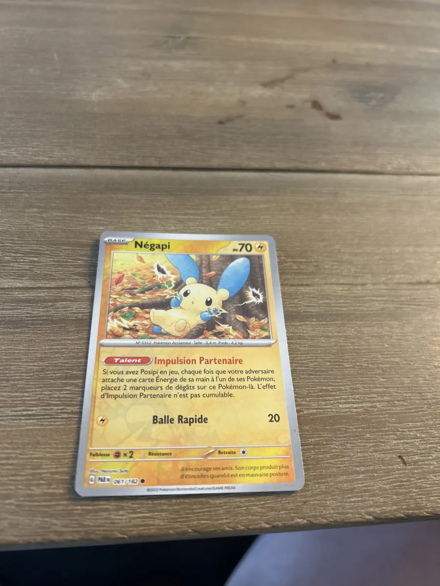 Cette carte Pokémon est super nickel, pas du tout abîmée ou une ou deux traces et tout rare quand même. J’accepte beaucoup d’offres, contactez-moi pour l’acheter.