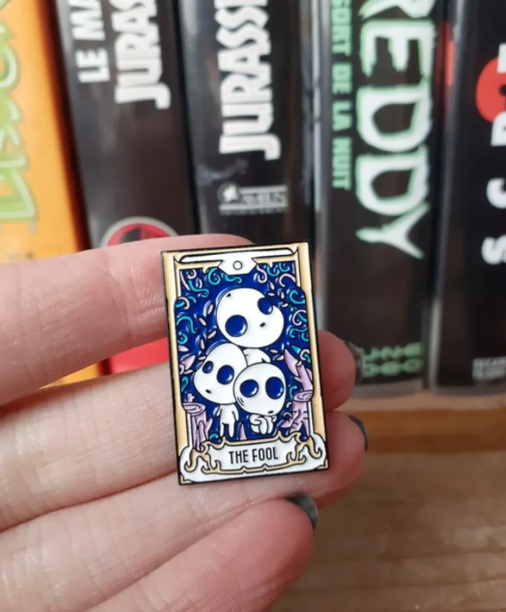 pins en metal pin's avec son attache manga anime studio ghibli le voyage de chihiro reprenant une carte de tarot de marseille divinatoire esoterisme esprits de la forêt princesse mononoke