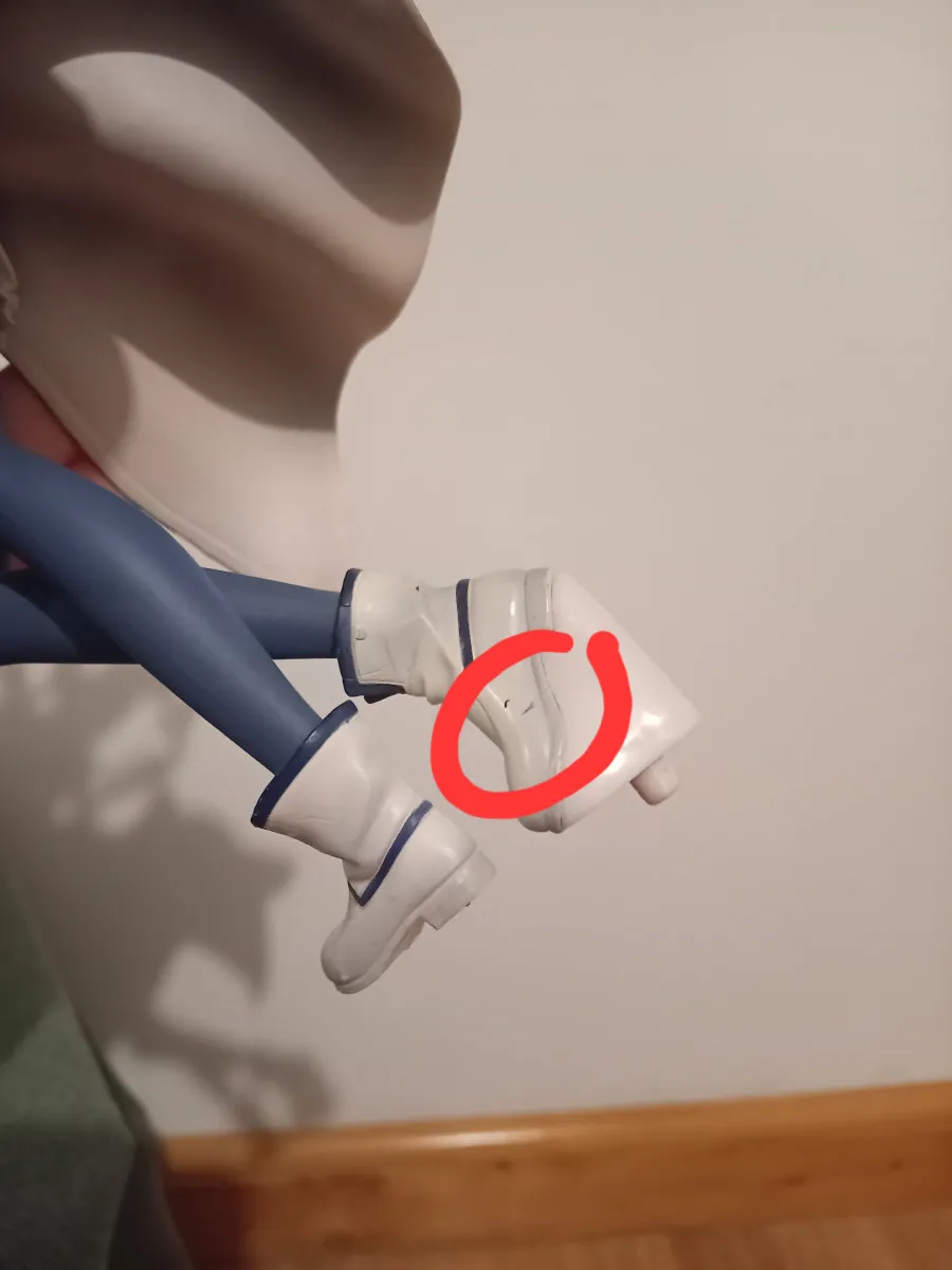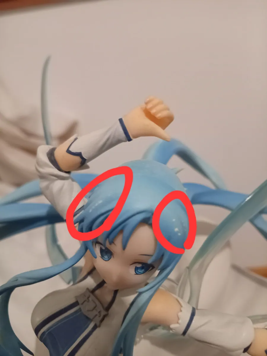 Figurine complète (boîte + personnage + épée + support) MAIS comportant légers dégâts sur cheveux et pied. Voir photos.