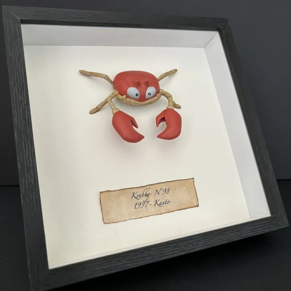 KRABBY #98 - POKEMON miniature de collection style entomologie et taxidermie sous cadre
