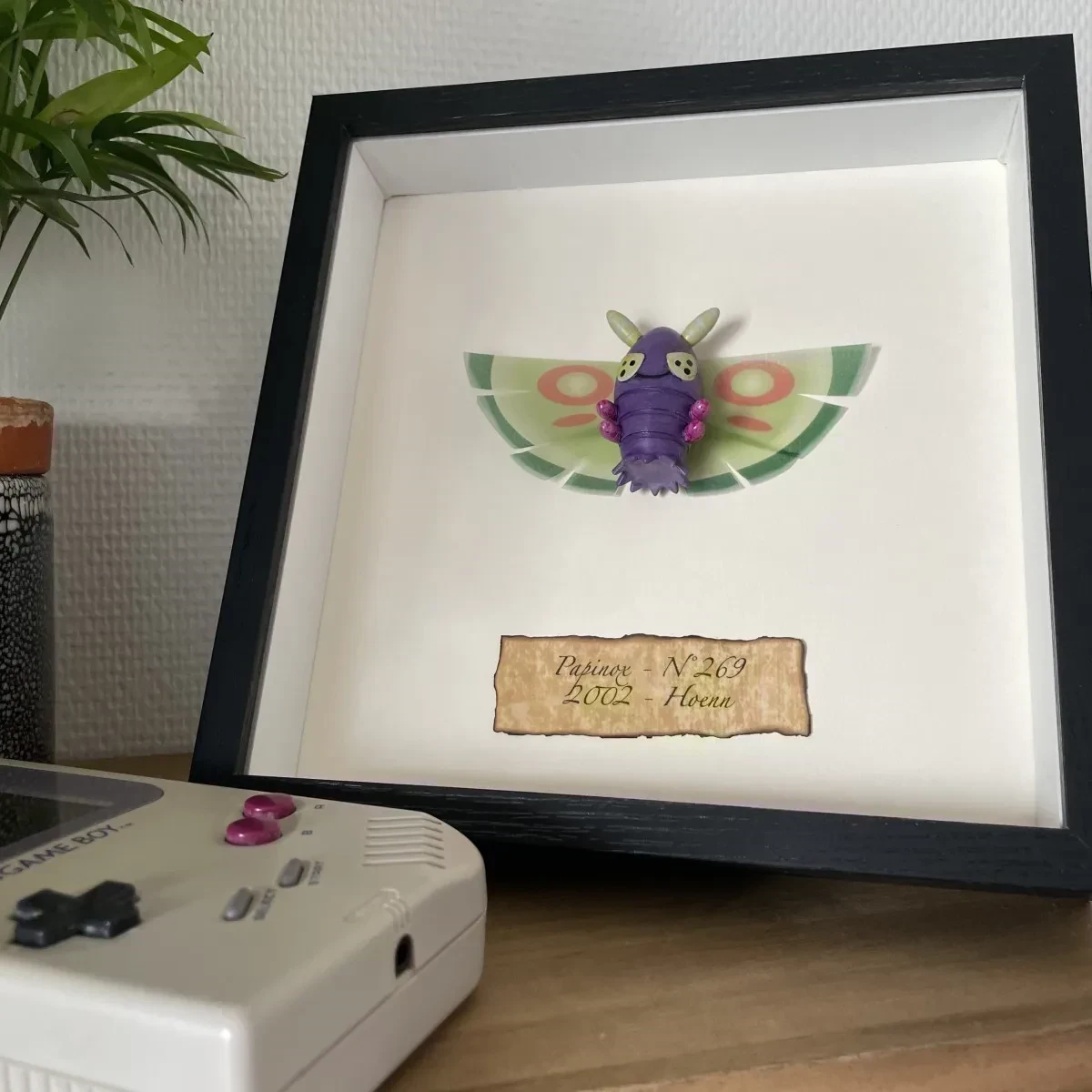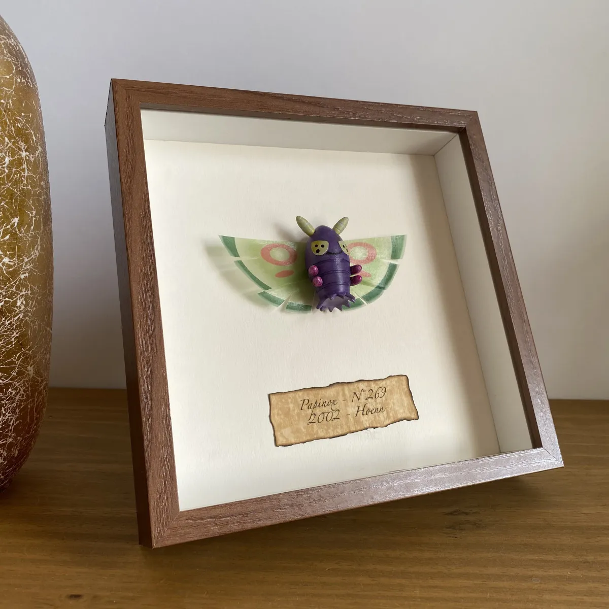 PAPINOX #269 - POKEMON miniature de collection style entomologie et taxidermie sous cadre