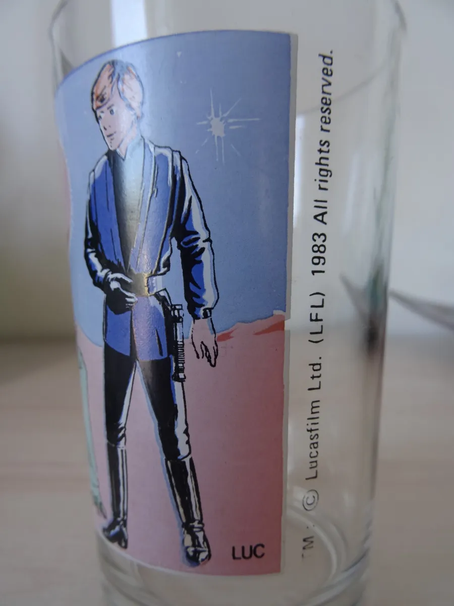 Lot verra Amora et badge Star Wars 1983 Retour du Jedi LFL collection Sith LukeYoda LFL