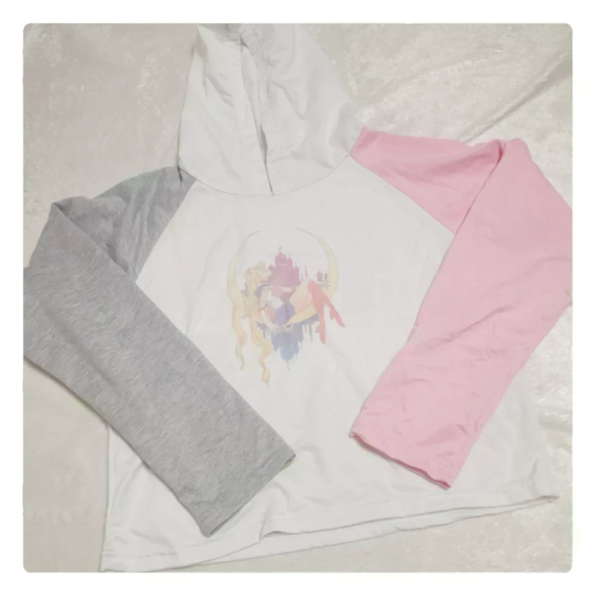 — Pull/sweat crop top blanc rose et gris Sailor Moon