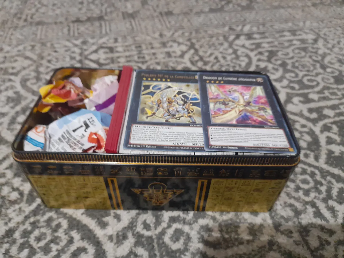 Dans cette boîte vous pourrez retrouver 300 carte,10 pochette,2 cartes rares.