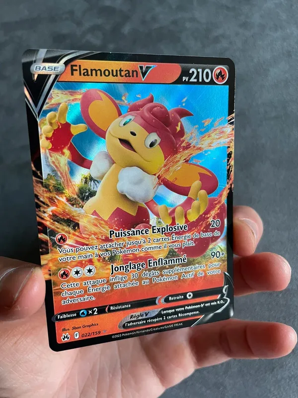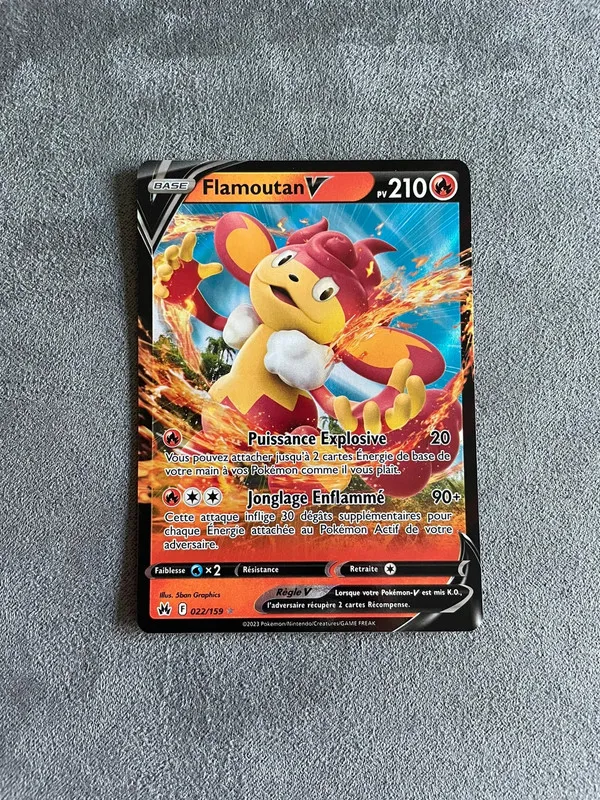 Carte Pokémon flamoutan V 22/159 sorti de booster et protégé directement. Zénith suprême . Épée et bouclier. D’autre carte et item dans mon dressing.📦 envoi rapide et bien protégé