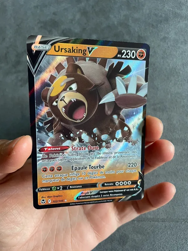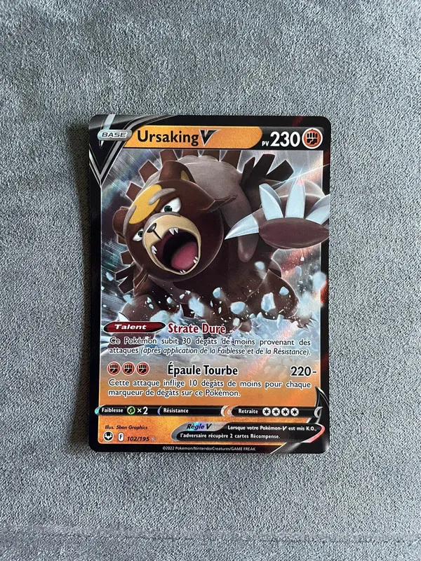 Carte Pokémon Ursaking V 102/195 sorti de booster et protégé directement. Tempête argenté. Épée et bouclier. D’autre carte et item dans mon dressing.📦 envoi rapide et bien protégé