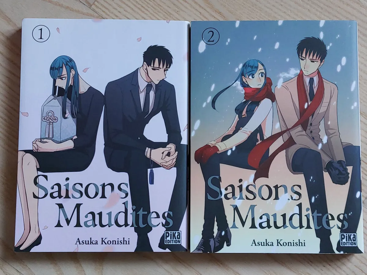 Tomes 1 et 2 de Saisons Maudites, d'Asuka Konishi parus aux éditions Pika.