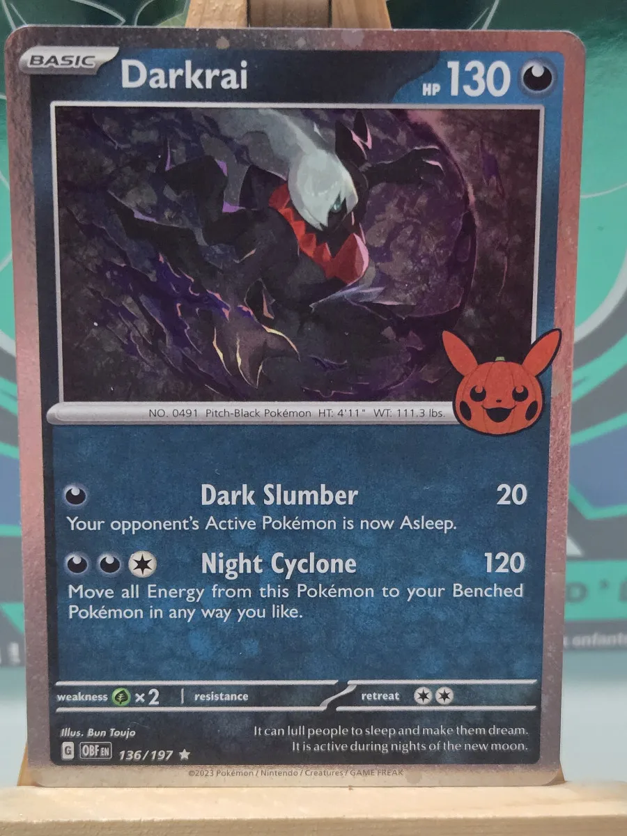 Voir plusDarkrai 2024 Trick Or Trade Halloween Stamp Pokemon TCG Cosmos Holo Rare 136/197
