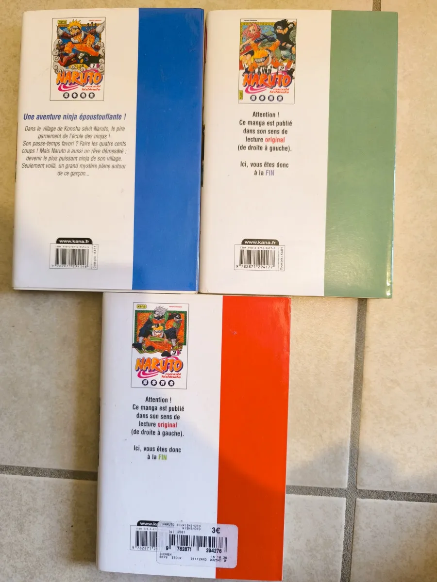 Je vends les mangas "Naruto" - Tome 1, Tome 2 et Tome 3.