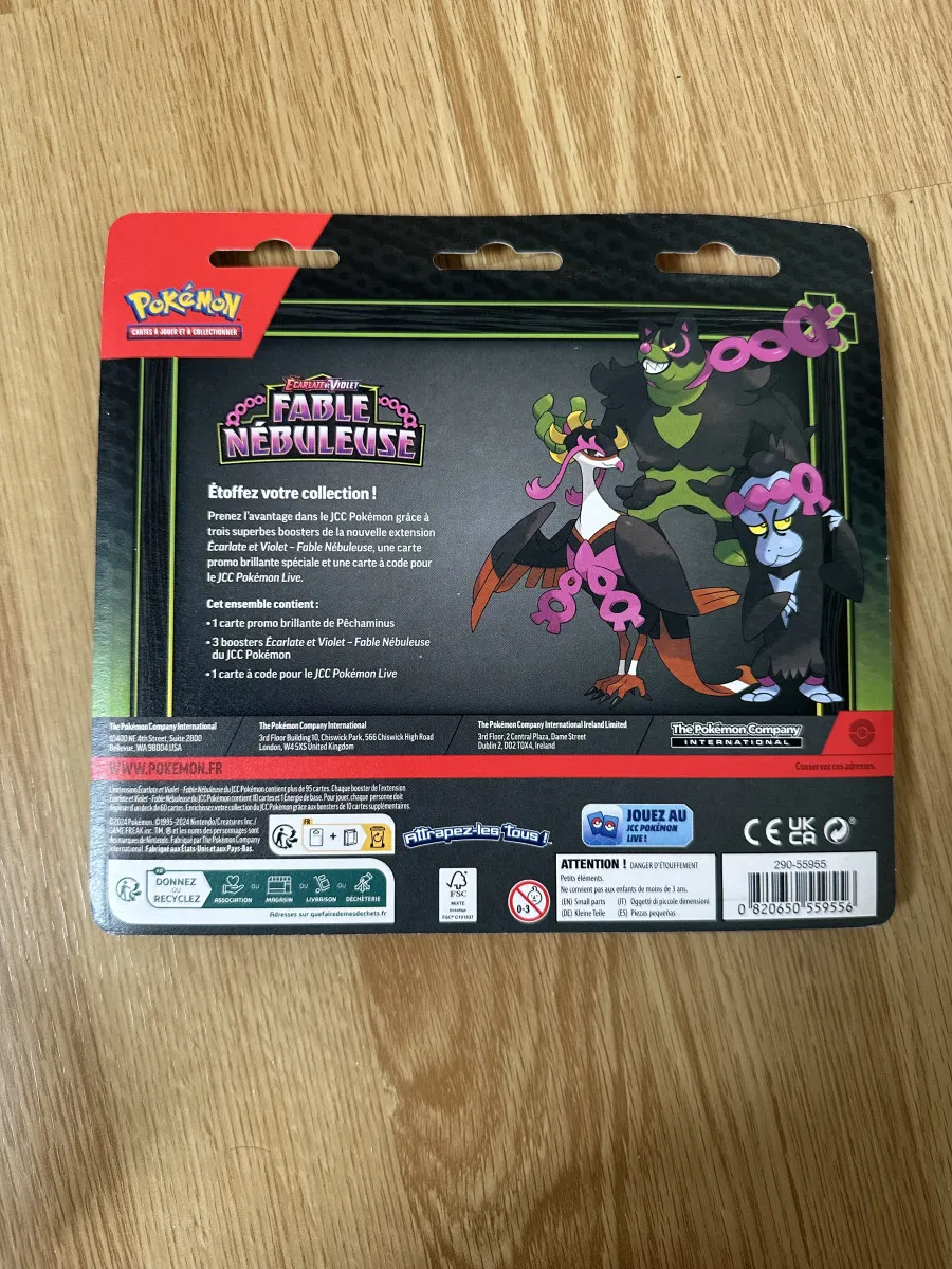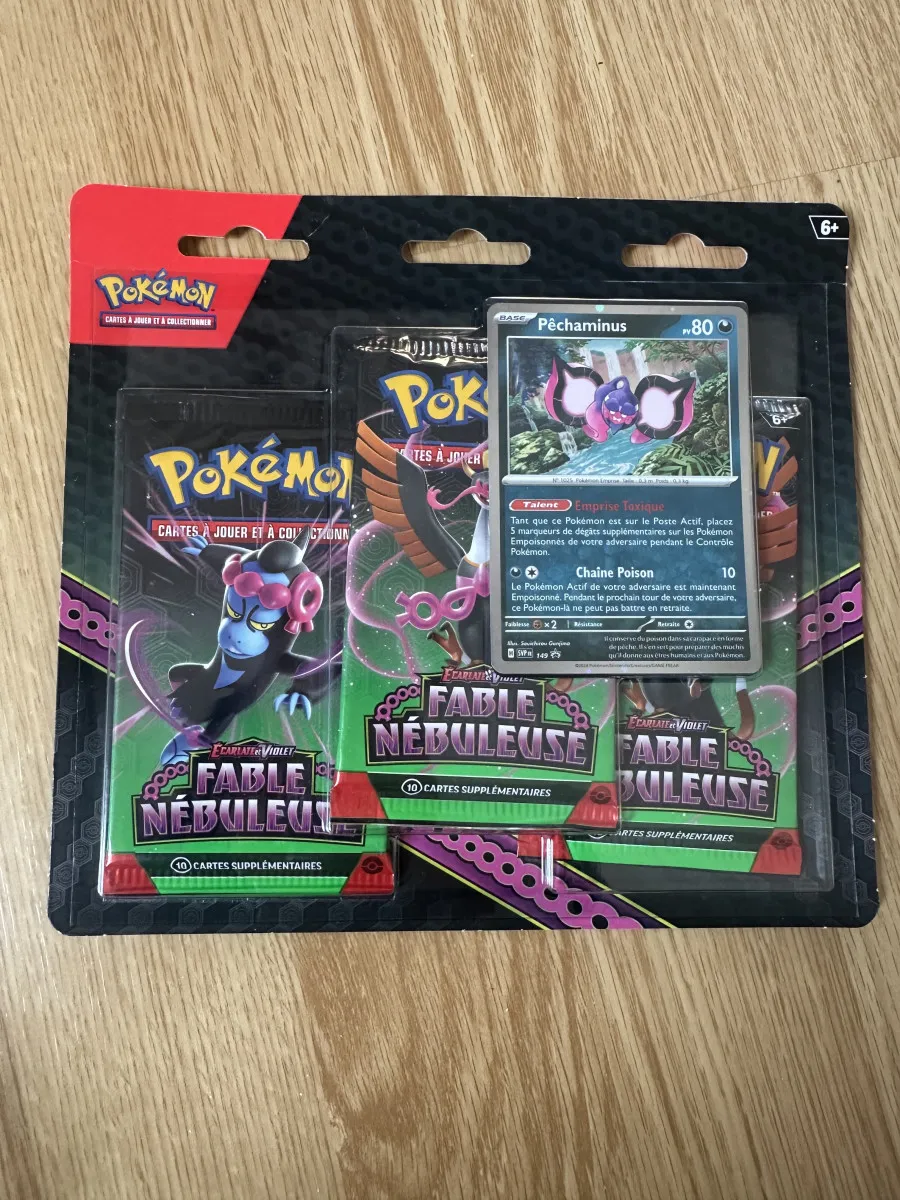 Tripack Pokémon, Bloc Écarlate et Violet, Série Fable Nébuleuse EV6.5, Pêchaminus, version française.