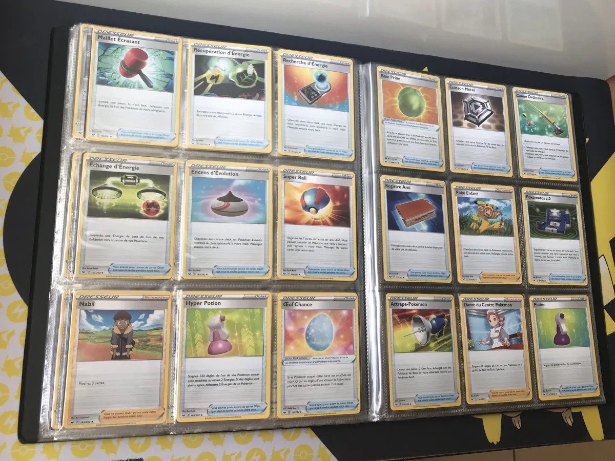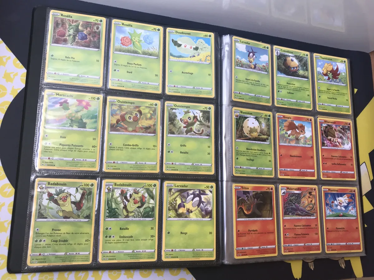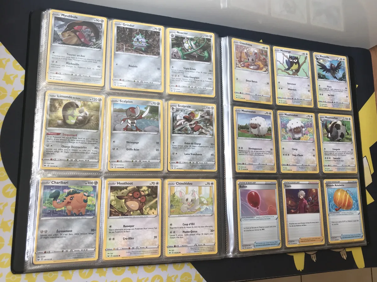 Full set du bloc Épée et Bouclier de la série set de base (EB1) des cartes communes, peu communes et énergies pour un total de 124 cartes toutes sorties de booster et sans double.