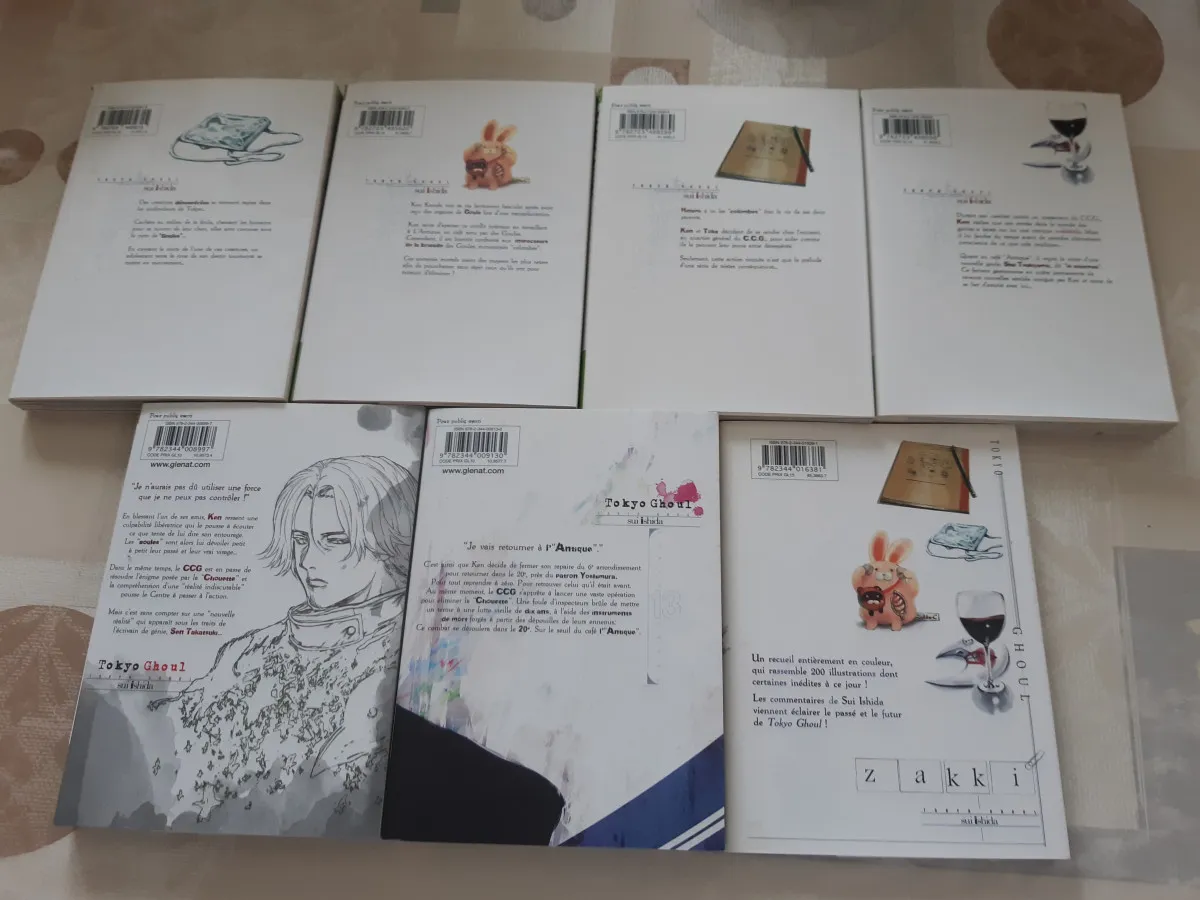 Voir plusLot 7 mangas - Tokyo Ghoul - tomes 1 à 4 + 12 et 13 + tome bonus Zakki