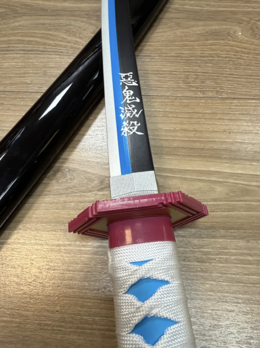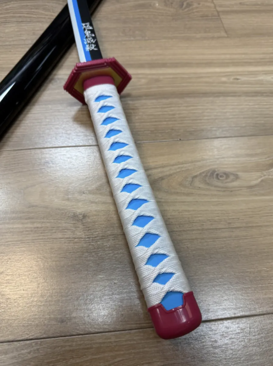 Ce katana Giyu Tomioka est fabriqué en bambou avec tsuba et tsuka en plastique, et fourreau en bois. Léger et parfait pour la décoration, le cosplay ou la collection.