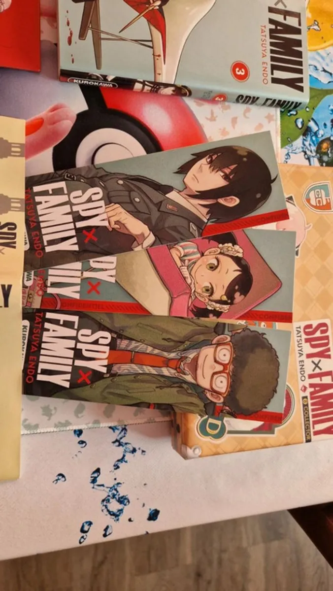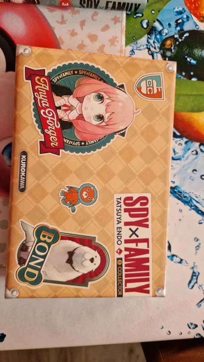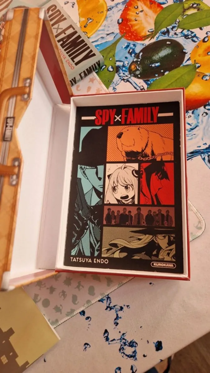 Spy x Family tome 1 à 5 + jaquette exclusive tome 6 +plaque métallique + marque pages+ jaquette exclusive tome 6 + postcard