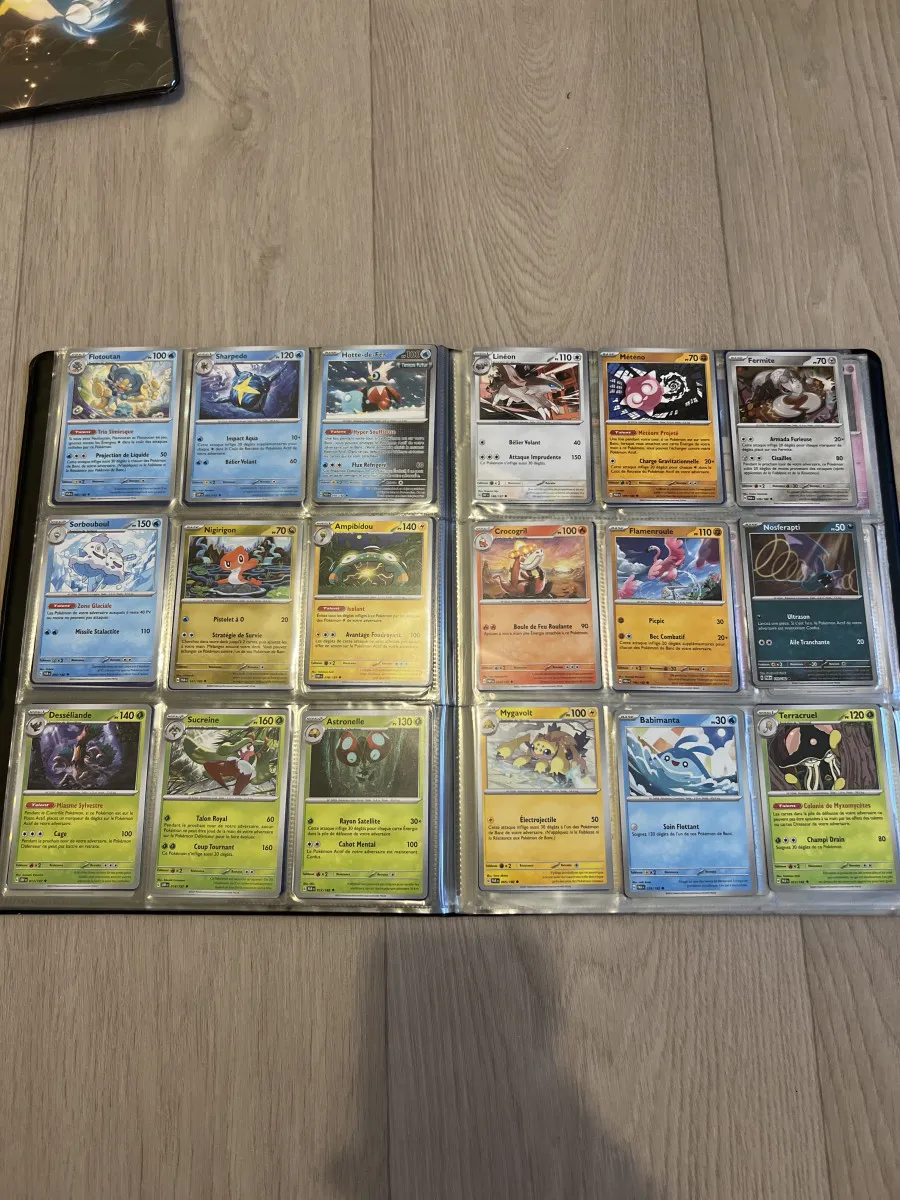 classeur pokemon avec carte a l’interieur en tres bon etat et les carte aussi il y’a des page que je n’ai pas pu mettre a cause du nombre de photo limité mais il y’a beaucoup plusse de carte que dans les photo le classeur est rempli j’expedie rapidement n’hesitez pas