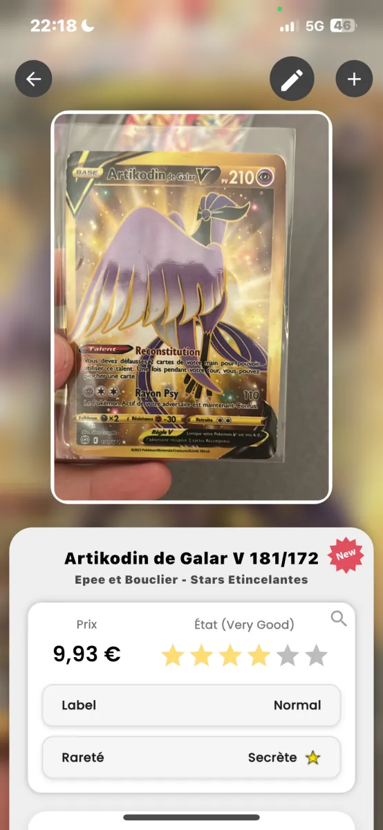 Carte vendu au prix