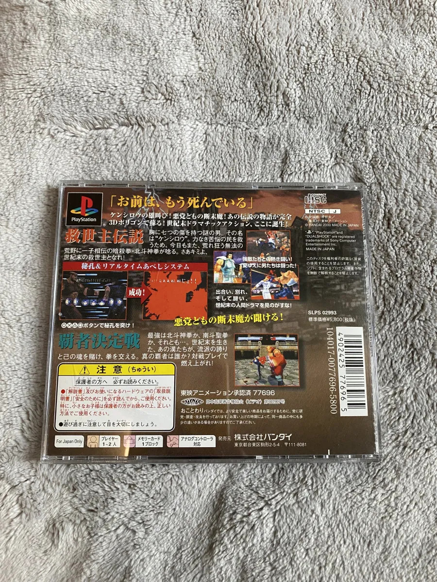 Jeu Hokuto no ken(ken le survivant)s pour PlayStation 1, version japonaise(langue et manuel), en très bon état. sortie qu’au Japon.