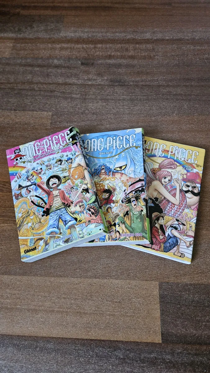 Voici 3 tomes de la série One Piece en bon état !