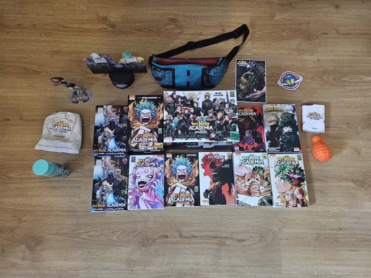 Manga my hero academia tome 37 à 42 donc le tome 37,39 et 42 en collector avec tout les goodies sauf le tee-shirt