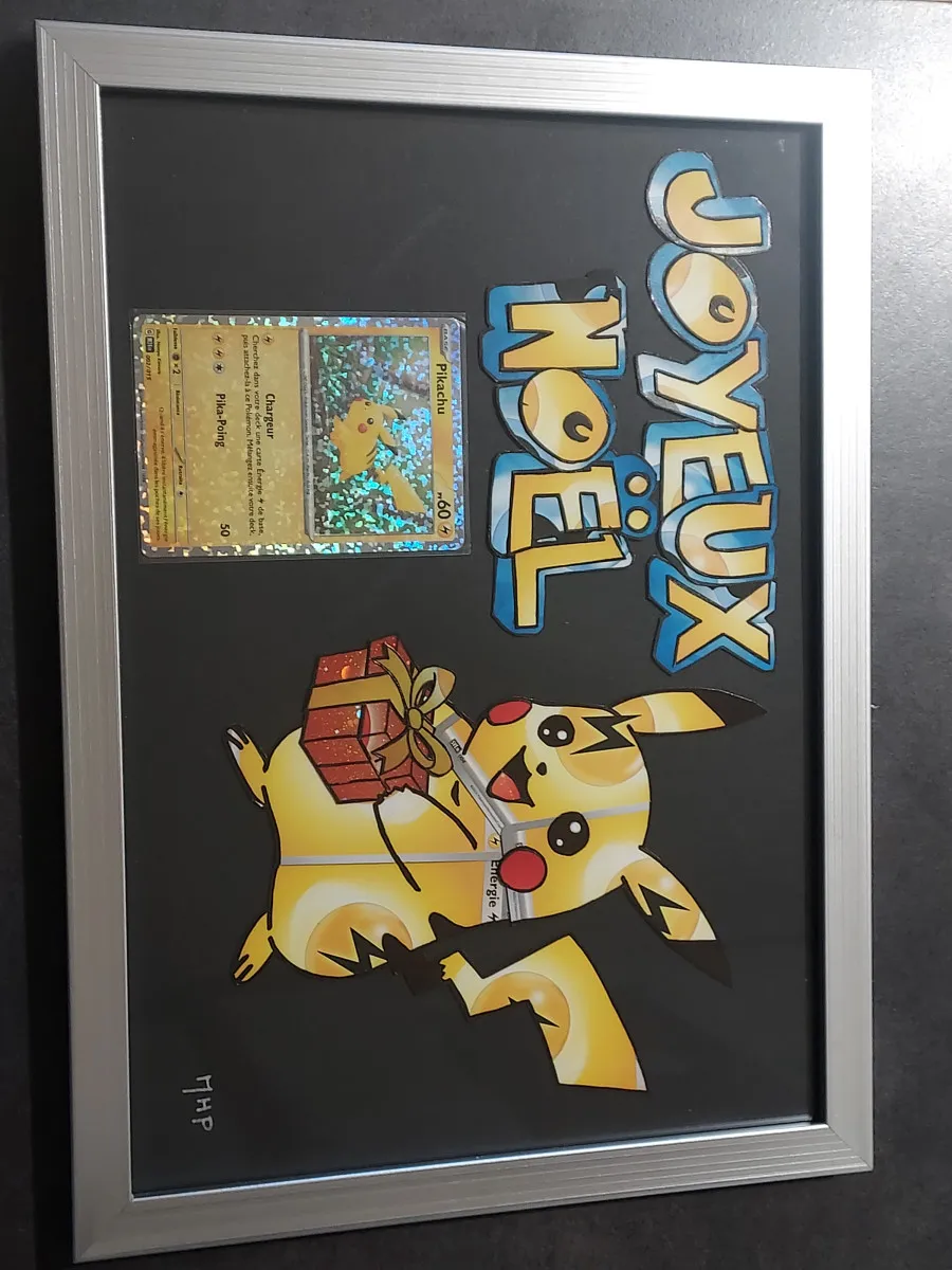 Cadre pokémon pikachu format A4 en cartes énergies