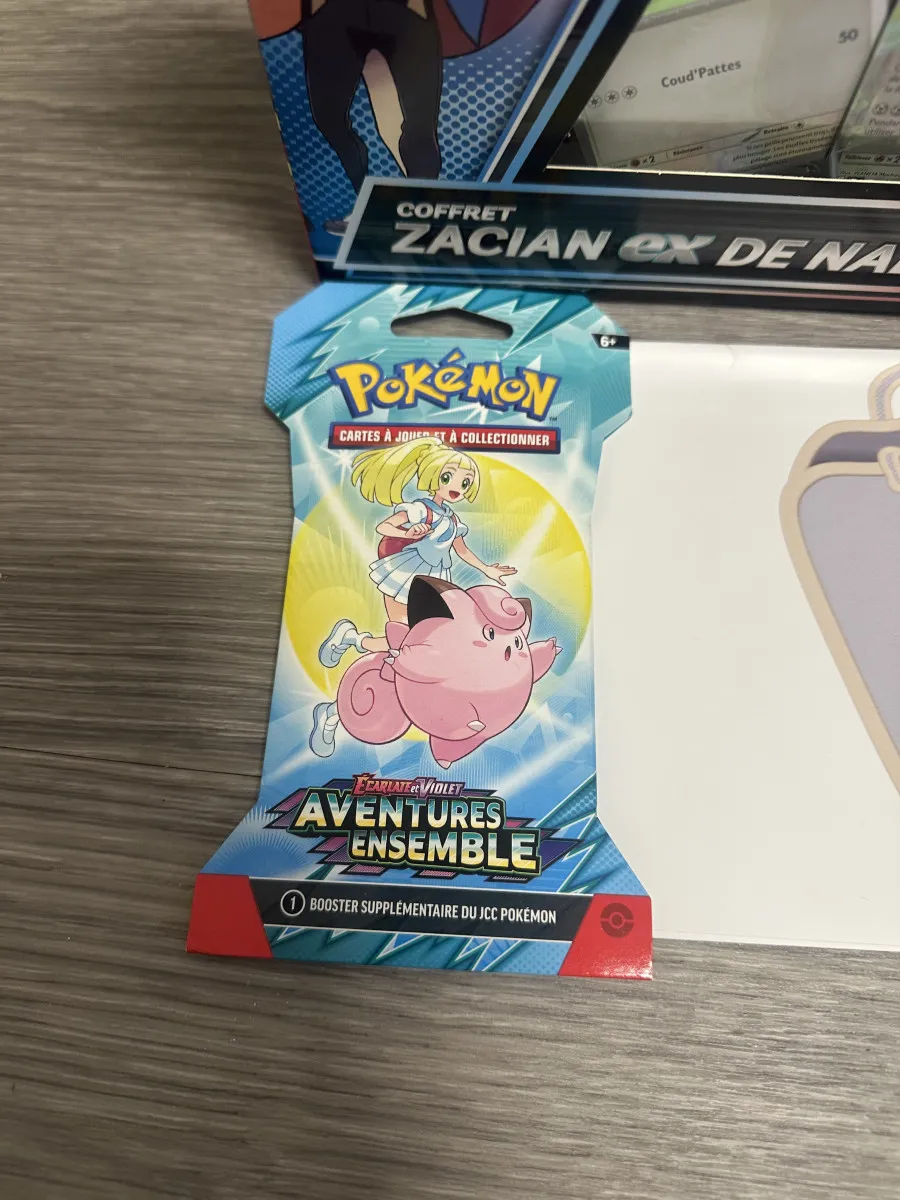 Lot Coffret Pokémon, Zacian-ex de Nabil et 2 booster EV09 Aventures ensemble en français