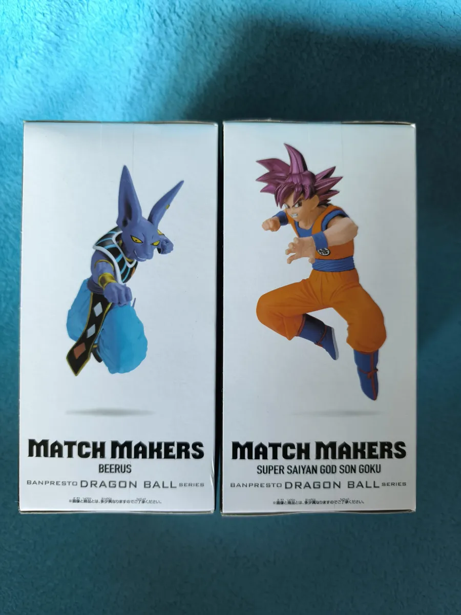 Duo Beerus et Son Goku Super Saiyan God issu de la gamme Match Makers, recréant leur affrontement emblématique du début de Dragon Ball Super. Superbe ensemble avec poses dynamiques et finitions soignées 🔥