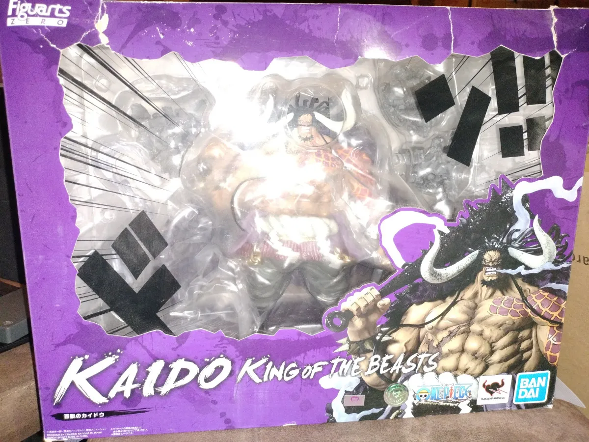 Vends figurine officielle One Piece - Kaidou - Chou Gekisen -Extra Battle- - Figuarts ZERO - Hyakujuu no (Bandai Spirits) neuve dans sa boîte, jamais déballée. Le carton de la boîte est légèrement abîmé à l'avant, mais la figurine n'a aucun dommage.